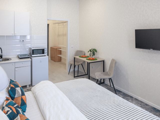 Уютная студия в центре Анапы от компании B-Flats — идеальное место для вашего отдыха! Позвольте себе окунуться в атмосферу комфортного отдыха в Анапе, остановившись в нашей замечательной студии от компании B-Flats. Мы предлагаем вам уникальную возможность получить удовольствие от комфортного проживания в современном жилом комплексе, расположенном в нескольких минутах от живописных пляжей и центральной набережной, рядом со знаменитым Крещенским парком. Этот район идеально подходит для тех, кто ценит доступность всех необходимых удобств: супермаркеты, магазины, кафе и аптеки находятся в шаговой доступности, а оживленная атмосфера создаёт ощущение постоянного праздника. В нашем уютном жилье вы сможете насладиться простором и функциональностью. Студия площадью 24 кв. м. предлагает светлую спальню с большой кроватью и встроенной кухней, где каждый элемент создан для вашего комфорта. В ванной комнате имеется современный санузел с душевой кабиной, а в зависимости от времени суток вы сможете наслаждаться тихими вечерами с приятным разговором или в тишине, расслабляясь после активного дня. На балконе расположено дополнительное двухспальное место и столик, где вы сможете наслаждаться свежим воздухом и видом на живописные просторы города. Блэкаут-шторы обеспечат необходимую тишину и уединение. Во время отдыха в наших апартаментах, открывайте для себя свежие ароматы и радости солнечного курорта. Вдохните благоухающий морской воздух, наслаждаясь свежестью и теплотой. Закаты, яркие и завораживающие, создадут атмосферу романтики и уюта, а долгие зимние вечера порадуют вас спокойствием и комфортом. Приезжайте к нам, и дайте себе возможность ощутить все прелести отдыха в Анапе. Мы гарантируем, что ваше времяпрепровождение будет комфортным и незабываемым!