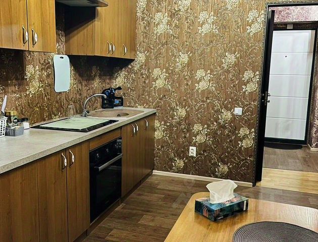 - Укомплектованная кухня со всем необходимым: холодильник, варочная панель, чайник, посуда, микроволновая печь и мелочи на кухне