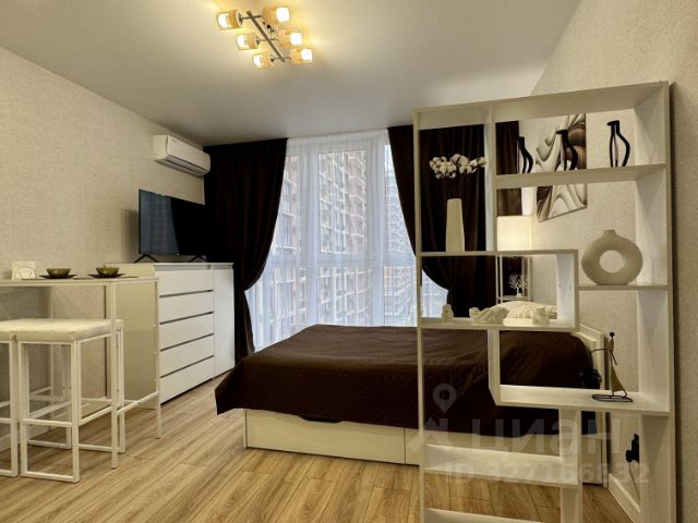 Арт. 120490993 Сдаётся просторная светлая квартира студия в ЖК "Самолет". В квартире никто не жил. Одно из лучших предложений в данной локации. В квартире выполнен качественный дорогой ремонт: установлены натяжные потолки, установлен кухонный гарнитур с электрической плитой, вытяжкой, установлена сплит система, кухонный стол со стульями. Кроме того в кухонной зоне имеется: холодильник, вместительный шкаф для одежды, микроволновая печь, новый раскладной диван с нишей под хранение вещей. Просторная лоджия, на которой установлен стол. Просторная ванная комната с ванной. Установлена новая сантехника. Смеситель с системой тропический дождь, установлено зеркало с подсветкой. Новая стиральная машинка. Жилой комплекс с развитой инфраструктурой: во дворе дома много парковочных мест, детская и спортивные площадки, в пешей доступности кафе, магазины, прогулочная аллея, 2 аквазоны, автобусные остановки, 2 новых современных школы, 4 новых детских садика. Коммунальные услуги оплачивает арендатор. Залога нет. Квартира сдается со страховкой компании "Самолет плюс". Проведу показ в удобное для Вас время. По всем вопросам звоните или пишите. Снять квартиру-студию в Краснодаре на длительный срок.