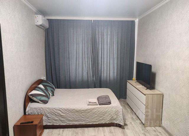 Стильная и уютная квартира в новом ЖК "Римские каникулы". В квартире есть всё необходимое для комфортного проживания: двухспальная кровать, диван подходит для детей, кухня, укомплектованная всем необходимым, чистое постельное бельё, набор махровых полотенец, средства личной гигиены. Оплачивая квартиру, вы соглашаетесь с правилами проживания: 1) мы не сдаём квартиры несовершеннолетним. Если квартира нужна для проживания детей-спортсменов, просим осуществлять бронирование их родителей или тренера. 2) курение в квартире категорически запрещено. Курить можно только на балконе при закрытой двери, там специально стоит пепельница. 3) вечеринки запрещены. В случае нарушения тишины в ночное время (с 21:00 до 9:00) мы выселяем вас без права возврата денежных средств. 4) соблюдайте, пожалуйста, порядок и чистоту, мусор за собой выкидывать не нужно. 5) вместе с оплатой брони вы отправляете свои паспортные данные и залог. 6) заселение с 14:00. Выезд до 12:00. Остальное время оговаривается и оплачивается дополнительно. Подробности по телефону. Удобства: современная бытовая техника: смарт-телевизор, холодильник, электрочайник, утюг, фен, стиральная машина, необходимая посуда, гладильная доска и сушилка, кондиционер на кухне и в комнате, балкон с видом на двор и парковку. Важно: перед каждым заездом производится санитарная обработка помещения!