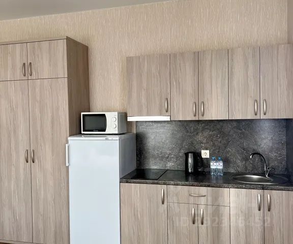 Бытовая техника, включая чайник, телевизор, стиральная машина, СВЧ печь, посуда и кухонная утварь.