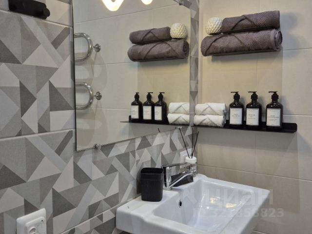 В санузле подогреваемые полы, удобная угловая, белоснежная ванная , умывальник с отличными смесителями и хороший унитаз, зеркало и красивый светильник.