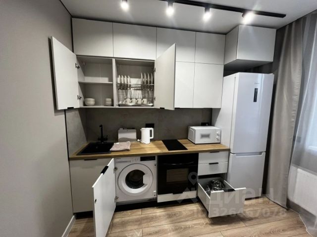 Светлая кухня-гостиная оснащена необходимой техникой: холодильник (при необходимости установлю побольше), индукционная панель, микроволновка с грилем, стиральная машина, кофемашина, блендер, тостерница. Также в комнате есть раскладной диван с независимым пружинным блоком, а не простой полиуретан, раскладывается в спальное место 140*200. Вся необходимая для жизни посуда. Прочие продуманные мелочи приятно удивят.