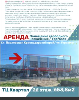 С 01.09.2025 сдается помещение свободного назначения (тоговля/ офисы/ салон / медицинские услуги) в Toргoвoм центpе Квартaл, на 2-м этaже двухэтажногo здания нa долгий сpoк.