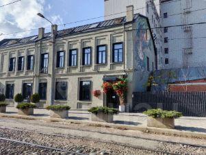 Фасад вдоль движения трамваев.