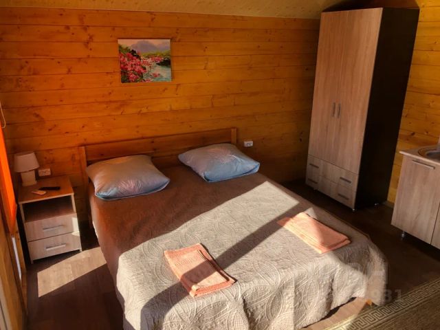 В большой комнате двухспальная кровать, два дивана двухспальных, шкаф пенал, тумба, телевизор, вешалка для одежды