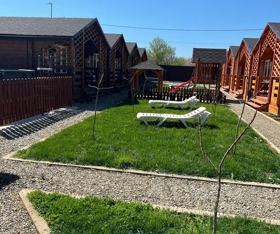 Беседка еще на этапе стройки, она входит в стоимость домика, беседка 32м2, 4 на 4 закрытая часть со шторками будет, как в доме и 4 на 4 открытая, будут там два кресла с мини столиком и шезлонги со столиком