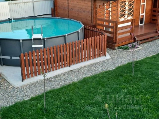 На участке один огороженный забором домик, подсыпан околом, каркасный бассейн с фонтаном подсветкой 4*2*122, пальмы небольшие, свет на участке , шезлонги