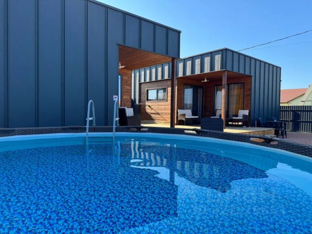 Апартаменты - двухкомнатная квартира - общей площадью 80 м2, современный дизайн и интерьер, сплит-система в каждой комнате, предоставляется постельное белье, теплые пледы по желанию. Спальня площадью 20м2 - в успокаивающих тонах. Двуспальная кровать, детская кровать, шифонер. Гостевая комната - очень просторная 25м2, в спокойном тоне, телевизор, мягкий дива, сплит систем. На кухне - кухонная стенка, газовая печь , микроволновая печь, большой холодильник, обеденный стол, стулья, чайник, набор посуды, кроме того , предоставляются - кухонные полотенца, моющие средства. Санузел, ванная, раковина - тюльпан, зеркало, стиральная машина - автомат. Предоставляется: набор банных полотенец , туалетная бумага, освежитель воздуха. Размещение: 6 человек. Во дворе имеется детская площадка. также на территории есть мангал , беседки для отдыха, Апартаменты находятся на территории гостевого дома