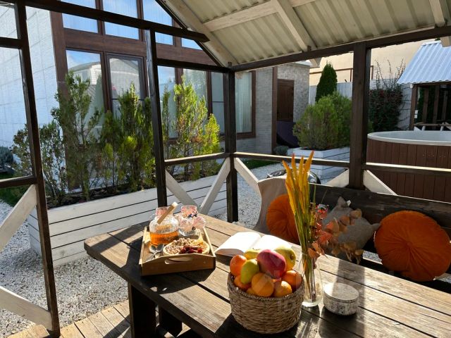 Villa Rai — уют и отдых в окружении дубового леса На территории вы одни — полная приватность, глухой забор, за которым — дубовый лес и живописные тропы Лес сразу выходя за калитку — тропинки, воздух и тишина Долина Лефкадия, винзавод Саук-Дере и озеро греческое — всего 5 минут на авто До конного клуба — 10 минут Благородный ландшафтный дизайн, ухоженный газон Тёплый бассейн 32C 36C круглый год Костровая зона — дрова предоставляем Камин в доме — дрова предоставляем Мангальная зона — уголь нужно привести свой, решётку и шампура предоставляем 8 шезлонгов для отдыха Подвесная качель Столы и стулья на веранде, террасе и в доме Парковка — на территории и за территорией Кофемашина с кофейными зернами Полностью оборудованная кухня: посудомойка, газовая плита, духовка, микроволновка, холодильник и вся необходимая посуда Телевизор с подписками, караоке и большая колонка — для весёлых вечеров Wi-Fi Стиральная машина, фен, утюг и гладильная доска В каждой комнате — кондиционер Тёплые полы по всему дому Холодильник Размещение: До 10 спальных мест 4 изолированные спальни с двухспальными кроватями и шкафами для хранения В кухне-гостиной — дополнительное спальное место (диван) Просторный шкаф в прихожей 2 входа — в прихожую и в кухню-гостиную Панорамный вид на лес и бассейн Баня и банный чан на дровах — скоро открытие! После запуска добавится +6 спальных мест, 1 санузел и крытый мангал Удобства: 2 санузла Стиральная машина Домашние тапочки, зубные щётки, шампунь и гель для душа предоставляются Полотенца: Домашнее Для бассейна (Предоставляются исходя из 10 гостей, свыше необходимо привести с собой) Заезд с 14:00 / Выезд до 11:00 Размещение и правила: Вместимость — до 10 гостей с ночёвкой До 20 гостей для дневного пребывания (возможно больше — по согласованию) Базовая стоимость за 8 гостей, свыше доп гости оплачиваются отдельно независимо с ночевкой или без. Залог — может быть увеличен в зависимости от количества гостей Правила проживания (важно): После 23:00 — тишина на улице Никакой пиротехники, файр-шашек, хлопушек или свечей Курение только в отведённых местах Аккуратное и бережное отношение к дому Гости 21+, несовершеннолетние — только в сопровождении взрослых Идеально подойдёт для: Семейных праздников Дней рождения Девичников и мальчишников Спокойного отдыха на природе Villa Rai — ваш дом, где уют, стиль и природа становятся одним целым