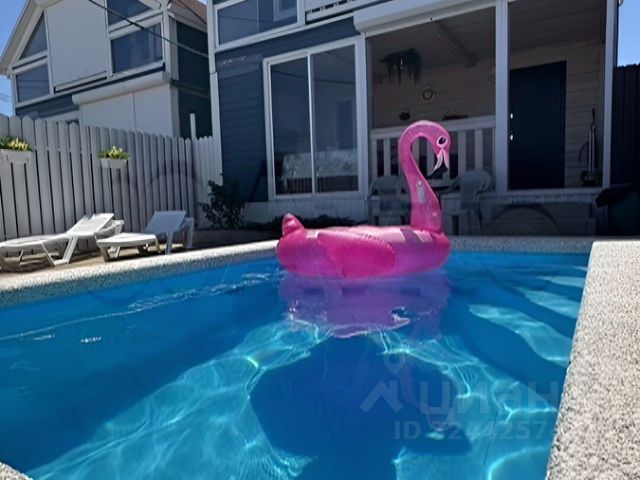 На участке один огороженный забором домик, подсыпан околом, каркасный бассейн с фонтаном подсветкой 4*2*122, пальмы небольшие, свет на участке , шезлонги