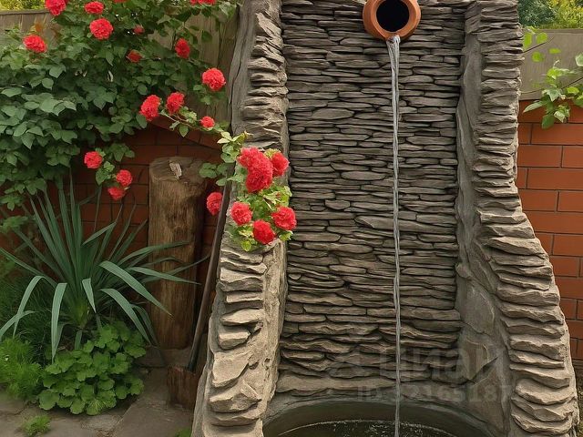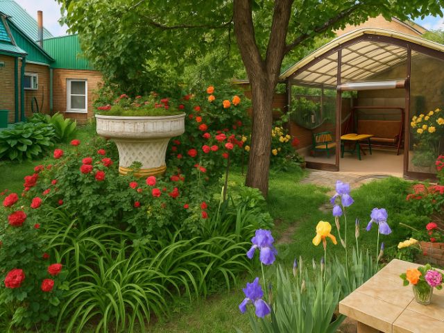 Домик находится на возвышенности, к нему ведут лестницы и ступеньки.