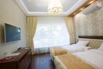 Номер оснащен ванной комнатой с душевой кабиной и санузлом, феном и гигиеническими принадлежностями. Есть холодильник, шторы blackout, теплый ковролин на полу. Вид через панорамное окно на бассейн. Общая площадь каждого номера - 27 кв. м.