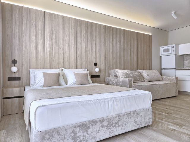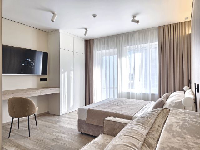 Оснащение номеров: кондиционер, большой телевизор со SMART TV, Wi-Fi, сейф. Акцентное и отраженное освещение. Пол с подогревом в холодное время года. Датчики противопожарной системы.