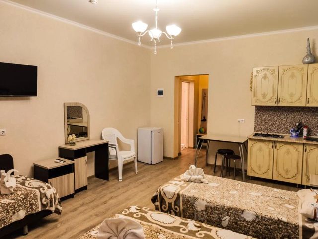 Круглогодичная База отдых "Белый Кит". В пешей доступности магазины и остановка общественного транспорта. 11 комфортабельных номеров с санузлами идеально подойдут как для отдыха так и для командировок в любое время года. Для комфорта гостей двуспальные или односпальные кровати. Ванная комната с душем, гигиенические принадлежности. Предоставляется постельное белье и полотенца. Большая парковка для гостей, подогреваемый бассейн размером 6 на 12 метров. Банкетный зал вместимостью до 50 человек, большая спортивная площадка. Беседки разного формата вместимостью от 12 человек до 30. мрымск — город в Краснодарском крае России, административный центр Крымского района, расположенный на реке Адагум, недалеко от Черного и Азовского морей, известный своим сельским хозяйством, виноделием (благодаря молдавским переселенцам), научными центрами ( Vavilovской станции), а также историческими памятниками, такими как курганы и развалины Крымской крепости, но также печально известный сильным наводнением 2012 года. Основные факты: Расположение: Краснодарский край, на реке Адагум, в 87 км от Краснодара, недалеко от Новороссийска. В Крымске и его окрестностях есть несколько интересных достопримечательностей, сочетающих историю и природную красоту. Крымский краеведческий музей расположен в одном из старейших зданий города — бывшей греческой школе на Пролетарской ул., 61. В его экспозициях можно узнать о природе и истории края, а также о событиях Великой Отечественной войны. Подробнее о режиме работы можно узнать на официальном сайте музея. Парк имени Тельмана — популярное место для прогулок и отдыха горожан. Здесь много зелени, есть детская площадка и фонтан с музыкальным сопровождением. В парке также находится памятник утраченному храму Архангела Михаила. Мемориальный комплекс "Сопка Героев" расположен на высоте в окрестностях города. Отсюда открывается панорамный вид на места исторических сражений и живописные окрестности. Греческое озеро (Новокрымское) — красивое обустроенное место для отдыха на природе. Вход и въезд платный. Площадь номера 35 квадратных метров. Две раздельные кровати. Собственный санузел и душевая кабинка. Телевизор, беспроводной интернет.