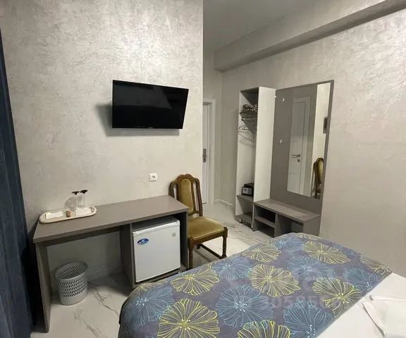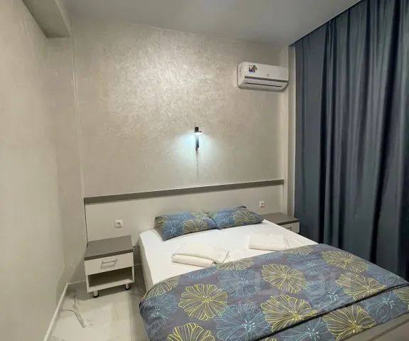 Номера оснащены двуспальными кроватями с современными ортопедическими матрасами. В номере присутствуют: тумбочки, стол, шкаф, вешалка, телевизор с диагональю 42, кондиционер, сейф, а также панорамные окна, шторы блэк-аут, стол и стулья. Санузел: Душевая кабина, полотенца, набор: шампунь и мыло.