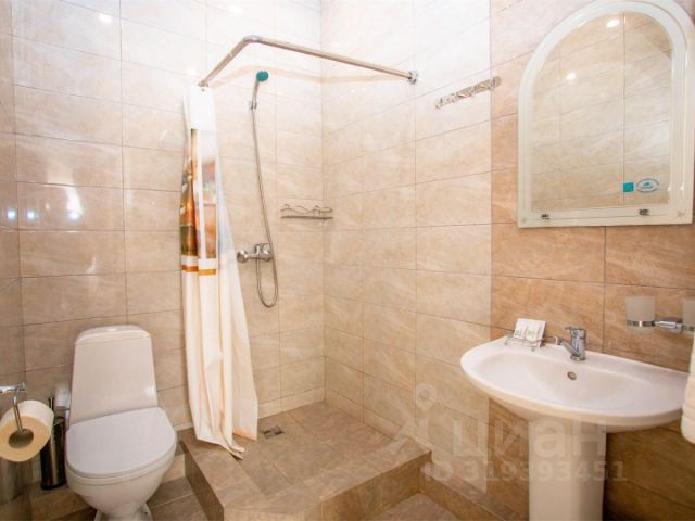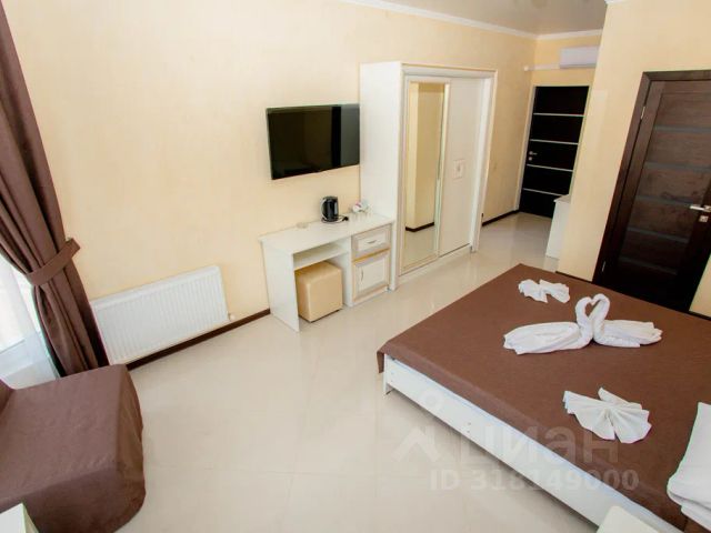 Студия оборудована кухней с индукционной электрической плитой, холодильником и чайником, есть необходимые столовые приборы, сковорода и кастрюля. Кондиционер охлаждает воздух, работает в режиме вентилятора. Совмещённый санузел с душем, туалетом и раковиной с зеркалом. Есть телевизор, обеденный стол и wi-fi. На окне и двери есть маскитная сетка от мух и комаров.
