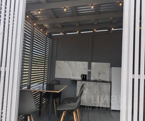 Зона для приготовления полноценного обеда или ужина со всем необходимым находится на террасе во дворе.