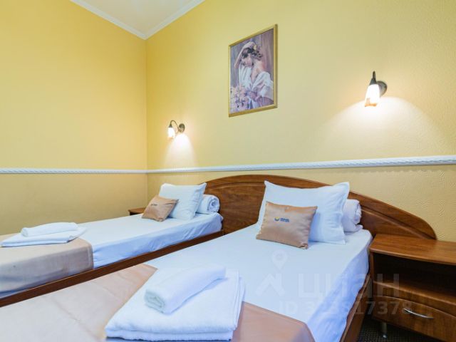 В комнате находятся две односпальные кровати (либо одна 2х спальная), аккуратно были расположены рядом, с удобными матрасами и свежим постельным бельем. Рядом с кроватями прикроватные тумбочки с лампами для чтения.