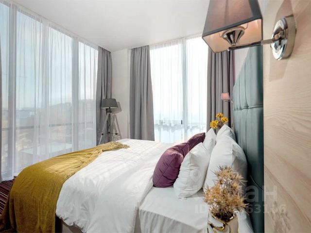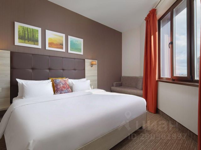 Комфортабельный яркий, панорамный номер, идеально подходящий для бизнес и семейных поездок, со спальной зоной с кроватью "King-size"(180*200) и раскладным диваном (160*195).