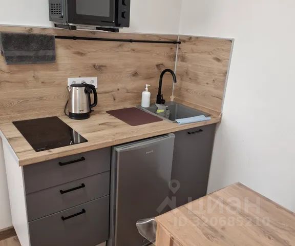 - Мини-кухня (посуда для сервировки и для приготовления, стловые приборы, электрический чайник, индукционная плита, холодильник с морозилкой),