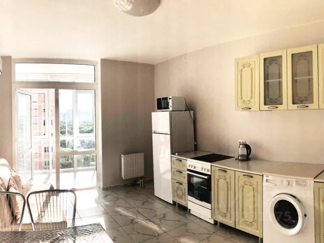 Квартира "Cтудия c Видом на Море" находится в Мысхако. Эта квартира располагается в 1 км от центра города. Рядом находятся продуктовые магазины и кафе. До моря можно дойти пешком. К услугам гостей квартира без балкона с панорамным видом на бухту Чёрного моря. Квартира оборудована для размещения до 3 гостей. К услугам гостей раскладной диван и односпальная кресло-кровать. В квартире работает Wi-Fi со скоростью 100 Мбит/с. Квартира оснащена водонагревательным баком, телевизором с функцией Smаrt TV, кондиционером, холодильником, стиральной машиной, микроволной печью, чайником, плитой, духовкой, феном, постельным бельём, полотенцами и ванными принадлежностями. Также для гостей имеется кофе и чай. После каждого выезда производится влажная уборка. В доме есть лифт. На территории жилого комплекса "Гармония Моря" обустроены детская площадка, парковка и закрытый двор с зелёной зоной.