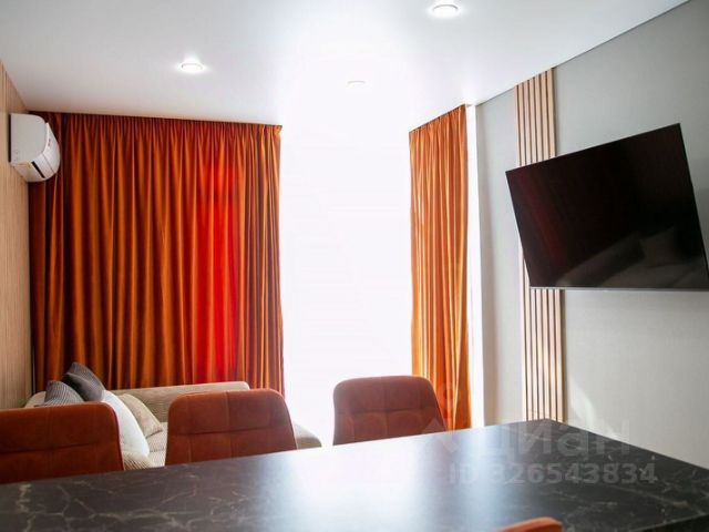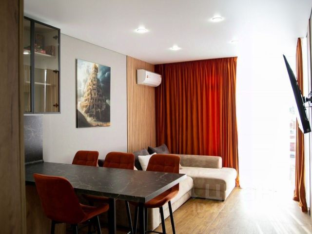 Квартира "Cтудия c Видом на Море" находится в Мысхако. Эта квартира располагается в 1 км от центра города. Рядом находятся продуктовые магазины и кафе. До моря можно дойти пешком. К услугам гостей квартира без балкона с панорамным видом на бухту Чёрного моря. Квартира оборудована для размещения до 3 гостей. К услугам гостей раскладной диван и односпальная кресло-кровать. В квартире работает Wi-Fi со скоростью 100 Мбит/с. Квартира оснащена водонагревательным баком, телевизором с функцией Smаrt TV, кондиционером, холодильником, стиральной машиной, микроволной печью, чайником, плитой, духовкой, феном, постельным бельём, полотенцами и ванными принадлежностями. Также для гостей имеется кофе и чай. После каждого выезда производится влажная уборка. В доме есть лифт. На территории жилого комплекса "Гармония Моря" обустроены детская площадка, парковка и закрытый двор с зелёной зоной.