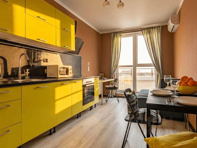 СКИДКА 10% от 3 дней! | Евродвушка | Кондиционер | Прекрасный вид с 15 этажа | Выставочный комплекс "Экспоград-Юг" 5 мин. на авто | Закрытая территория | Бесконтактное заселение | Wi-Fi | Отчетные документы | Расположение: - в 10 минутах - спортивные объекты, такие как "Баскет-холл" и Дворец Самбо, а также ТРЦ "Красная площадь"; - в 15 минутах - учебные заведения: военное училище им. Штеменко, университет МВД и Авиационное училище; - остановка общественного транспорта находится всего в 5 мин ходьбы; - на автомобиле до центра Краснодара можно доехать за 25 мин; - до знаменитого парка Галицкого за 30 мин. Рядом c дoмoм пpoходит трaccа М4-Дон, выeзд нa Pocтовcкoe и Ейскоe шocсe, в стoрoну Чeрногo и Aзовcкого моpей (напрaвлeние - Крым, Teмрюк, Aнaпa, Tамань). ЖК "Отражение" это закрытая территория, обеспечивающая безопасность и спокойствие жильцов, а также вашего автомобиля. Здесь созданы все условия для активного отдыха и развлечений: множество детских и спортивных площадок, а также зона отдыха для приятного времяпровождения с друзьями и семьей. В шаговой доступности от комплекса расположены все необходимые объекты инфраструктуры: ТЦ "Сыр", разнообразные магазины и кофейни, гипермаркет "Магнит" и строительный магазин "Лемана Про". Евродвухкомнатная квартира (комната+кухня гостиная) идеально подходит для комфортного размещения до 4-х гостей. В вашем распоряжении: - Уютная двухспальная кровать с ортопедическим матрасом; - Удобный большой раскладной диван в кухне-гостиной; - Белоснежное постельное белье и полотенца; - Два современных Smart-TV; - Две сплит-системы; - Полностью оборудованная кухня с холодильником, индукционной плитой, чайником, микроволновой печью, посудомоечной машиной и всей необходимой посудой; - Просторная ванная комната, средства личной гигиены:зубной набор, мыло, шампунь, гель для душа, ватные диски, палочки и тапочки; - Фен и гладильные принадлежности; - Высокоскоростной Wi-Fi; - Зона отдыха на лоджии с панорамным видом из окна; - Чай/кофе, конфеты, также в квартире установлен трехступенчатый фильтр для очистки воды. Залог 2000 рублей - возвращается в день выезда, после уборки квартиры. При заселении заключается электронный договор, обязательно необходим паспорт проживающего. - Не сдается для вечеринок и мероприятий. - Курение в квартире и на балконе запрещено (в т.ч эл. сигарет и кальянов). При нарушении залог не возвращается. - Проживание в квартире предусмотрено БЕЗ питомцев. Заезд после 14:00 Выезд до 12:00 P.S. Дoм новый(новостройка), поэтому все стараются сделать свои квартиры красивыми и стильными. Стоимость указана за сутки при двухместном размещении. Может меняться в зависимости от количества гостей, праздников, дней недели и выставок. Сеть апартаментов ЭнАпарт это идеальное место для тех, кто ценит комфорт, удобство и развитую инфраструктуру.