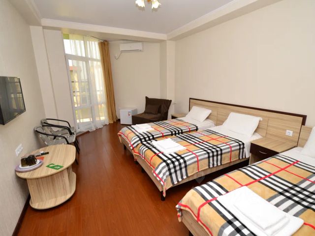 Гостинично-спортивный комплекс в 3 минутах ходьбы от пляжа в поселке Волна. На расстоянии 4 км располагается порт Тамань. В 2 минутах ходьбы от отеля автобусная остановка "Волна". Расстояние до ж/д станции "Тамань-Пассажирская" 7 км, до аэропорта Анапы 86 км. Для бронирования доступны номера категорий Стандарт и Люкс. Каждый из них оснащен телевизором, телефоном, холодильником, рабочим местом, феном. Собственные ванные комнаты оборудованы душевой кабиной. На всей территории доступен Wi-Fi. В ресторане при отеле организовано питание по системе "шведский стол". В комплексе есть множество различных спортивных залов, танцевальные площадки для проведения мероприятий. Гости могут поиграть в бильярд, посетить сауну и хаммам, а также отдохнуть на шезлонгах у открытого бассейна. Отель имеет собственный пляж. Для деловых мероприятий оборудован конференц-зал. Личный автомобиль можно оставить на парковке. В номере четыре односпальные кровати. Ванная комната с душевой кабиной, средства личной гигиены, банные принадлежности. Номера с балконом и видом на море или без балкона.