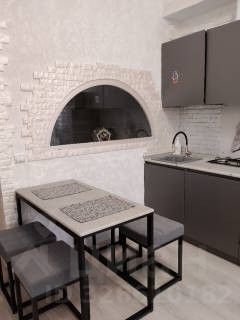 Квартира укомплектована для комфортного проживания всем необходимым: мебелью, бытовой техникой и посудой.